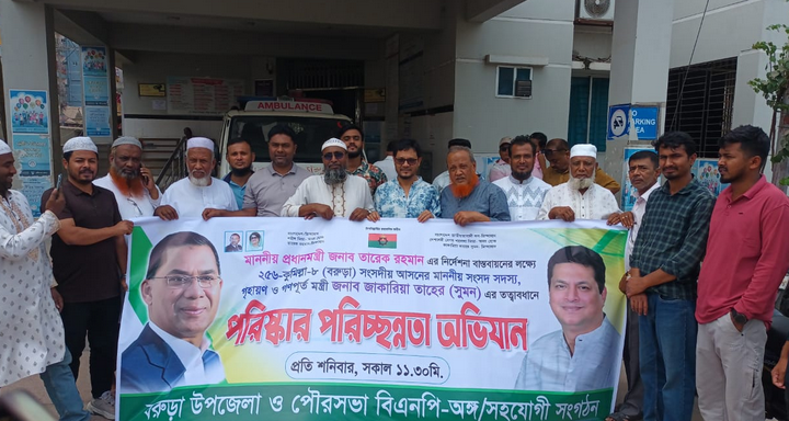 মোঃ শরীফ উদ্দিন: কুমিল্লা বরুড়ায় প্রধানমন্ত্রী তারেক রহমানের নির্দেশনা অনুযায়ী পরিস্কার পরিচ্ছন্নতা অভিযান অনুষ্ঠিত হয়েছে। আজ ১৪ মার্চ বেলা ১১টায় বরুড়া উপজেলা বিএনপির উদ্যোগে গৃহায়ণ ও গণপূর্তমন্ত্রী জাকারিয়া তাহের সুমন (এমপি) এর তত্বাবধানে প্রধানমন্ত্রী তারেক রহমানের ঘোষণা অনুযায়ী প্রতি শনিবার পরিষ্কার-পরিচ্ছন্নতা কর্মসূচির অংশ হিসেবে বরুড়া উপজেলা স্বাস্থ্য কমপ্লেক্সে পরিচ্ছন্নতা কার্যক্রম পরিচালনা করা হয়। উক্ত কর্মসূচিতে উপস্থিত ছিলেন উপজেলা বিএনপির সহ-সভাপতি সৈয়দ রেজাউল হক রেজু, সাধারণ সম্পাদক সৈয়দ জহিরুল হক স্বপন, পৌরসভা বিএনপির সভাপতি বীর মুক্তিযোদ্ধা শামছুল হক সর্দার, সাধারণ সম্পাদক মফিজুল ইসলাম, সাংগঠনিক সম্পাদক মোস্তফা জামান হানিফ, বরুড়া উপজেলা ছাত্রদলের সাধারন সম্পাদক লিটন পন্ডিত, দপ্তর সম্পাদক কাজী মোঃ আলা উদ্দিন সহ উপজেলা ও পৌরসভা বিএনপি ও অঙ্গ সংগঠনের নেতৃবৃন্দরা উপস্থিত ছিলেন। এসময় বরুড়া উপজেলা বিএনপির সাধারণ সম্পাদক সৈয়দ জহিরুল হক স্বপন বলেন মাননীয় প্রধানমন্ত্রী তারেক রহমানের ঘোষণা অনুযায়ী গৃহায়ণ ও গণপূর্তমন্ত্রী জাকারিয়া তাহের সুমন এর নির্দেশে বরুড়া উপজেলা বিএনপির উদ্যোগে এ কর্মসূচি বাস্তবায়ন হচ্ছে আমরা পর্যায়ক্রমে বরুড়া উপজেলা সদরের বাজার, রাস্তা ঘাট, স্কুল কলেজ মাদ্রাসার আঙ্গিনা, সহ খাল গুলোতে পরিস্কার পরিচ্ছন্নতা অভিযান পরিচালনা করা হবে। Post navigation বরুড়ায় গরুর মাংসের দাম বেশি রাখায় ভ্রাম্যমান আদালতের জরিমানা বরুড়ায় মা ও ছেলের রহস্যজনক মৃত্যু, পরিবারের অভিযোগ পরিকল্পিত হত্যা