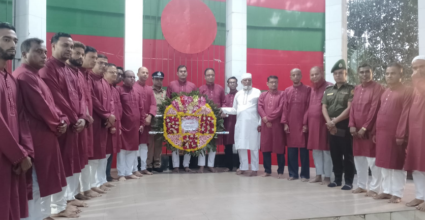 স্টাফ রির্পোটার: বরুড়ায় মহান স্বাধীনতা ও জাতীয় দিবস উপলক্ষ্যে উপজেলা প্রশাসনের উদ্যোগে ১৯৭১ সালের মুক্তিযুদ্ধের শহীদদের প্রতি গভীর শ্রদ্ধা নিবেদন ও পুস্প অর্পন করা হয়েছে। আজ (২৬ মার্চ) বৃহস্পতিবার সকাল আনুমানিক ৬ টার দিকে বরুড়া কেন্দ্রীয় শহীদ মিনারে এ পুস্প অর্পন করা হয়। এ সময় উপস্থিত ছিলেন উপজেলা নির্বাহী কর্মকর্তা আসাদুজ্জামান রনির, উপজেলা সহকারী কমিশনার (ভূমি) আহসান হাফিজ ও বরুড়া থানার অফিসার ইনচার্জ মুহাম্মদ আজহারুল ইসলাম সহ উপজেলা পরিষদের বিভিন্ন দপ্তরের কর্মকর্তাবৃন্দ। Post navigation বরুড়ায় ঈদের নামাজ আদায় করলেন গৃহায়ণ ও গণপুর্ত মন্ত্রী জাকারিয়া তাহের সুমন